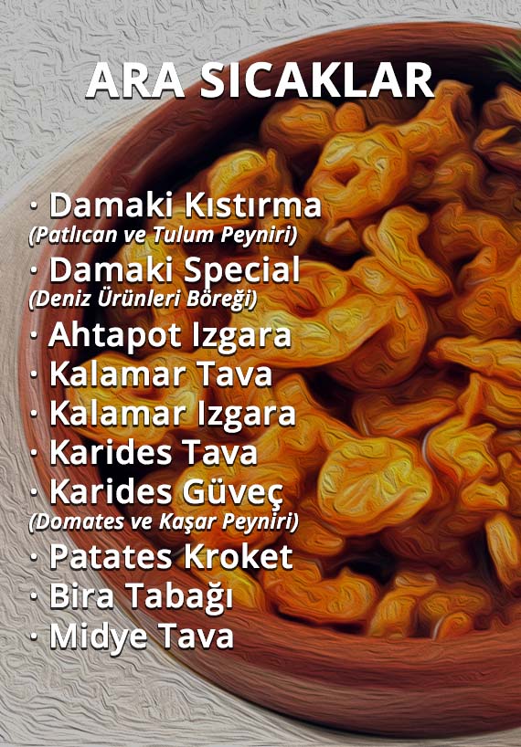 Binamızın tarihi 1800’lü yıllara kadar uzanıyor… Rum-Osmanlı ortak mimarisi olan bina, 2000’li yılların başına kadar ev olarak kullanılmış; 2017 sonu itibarıyla tarihi dokusu bozulmadan restore edilmiştir. Damaki Restoran, tarihi dokusu ve konumu, konforu ve lezzetli tatlarıyla sizleri bekliyor…